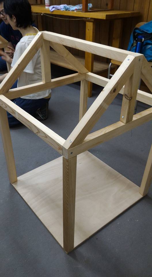 2時間半、トントンカンカンたくさん釘を打ってついに「ミニ旅家」が完成。