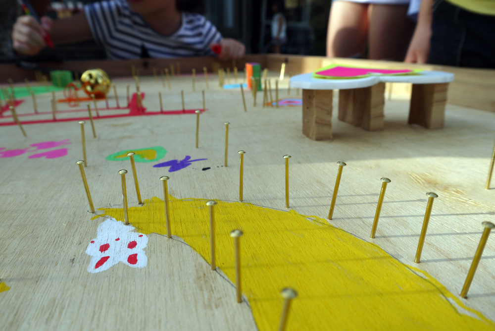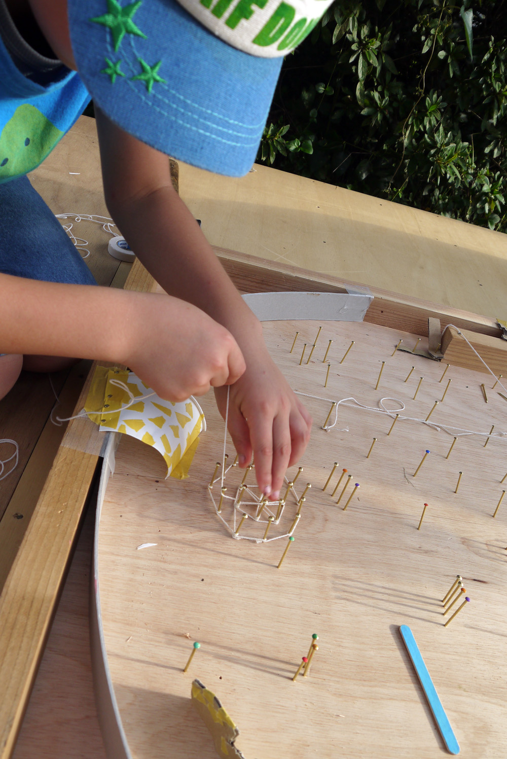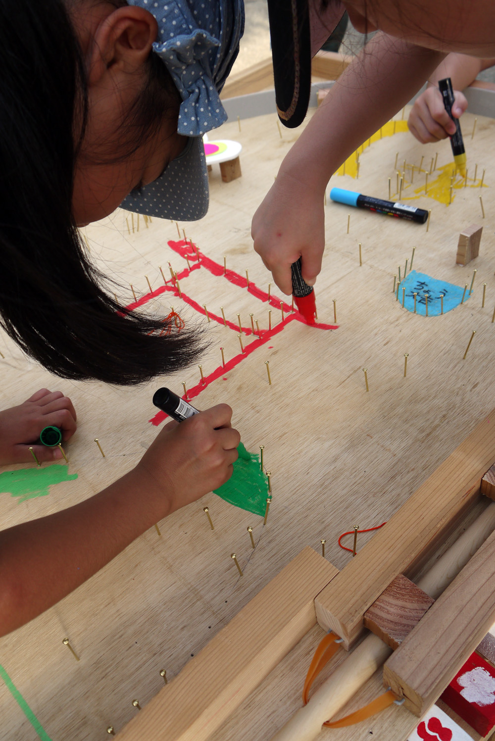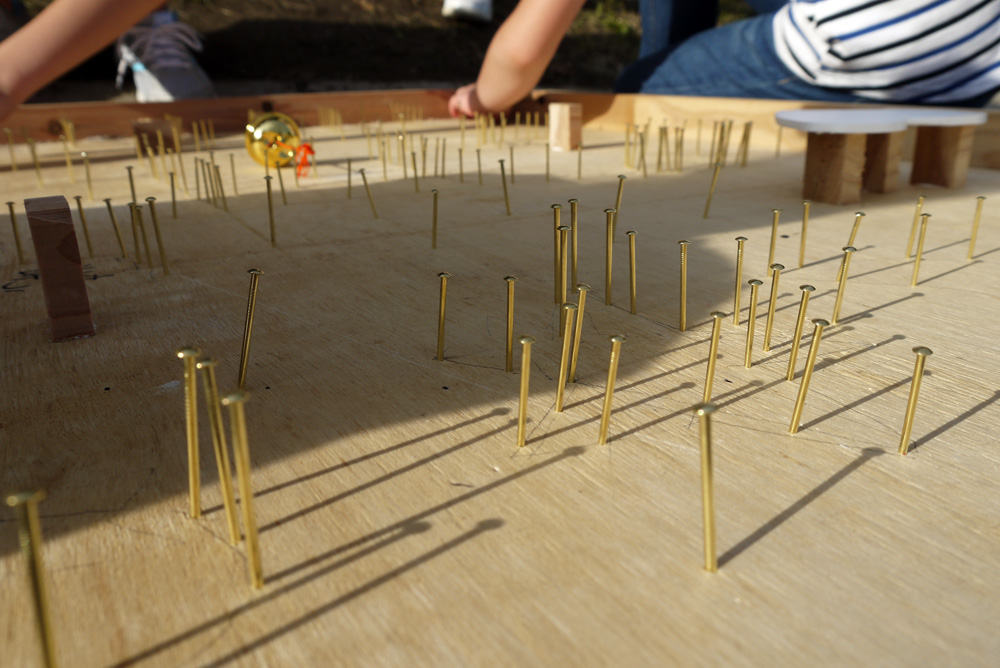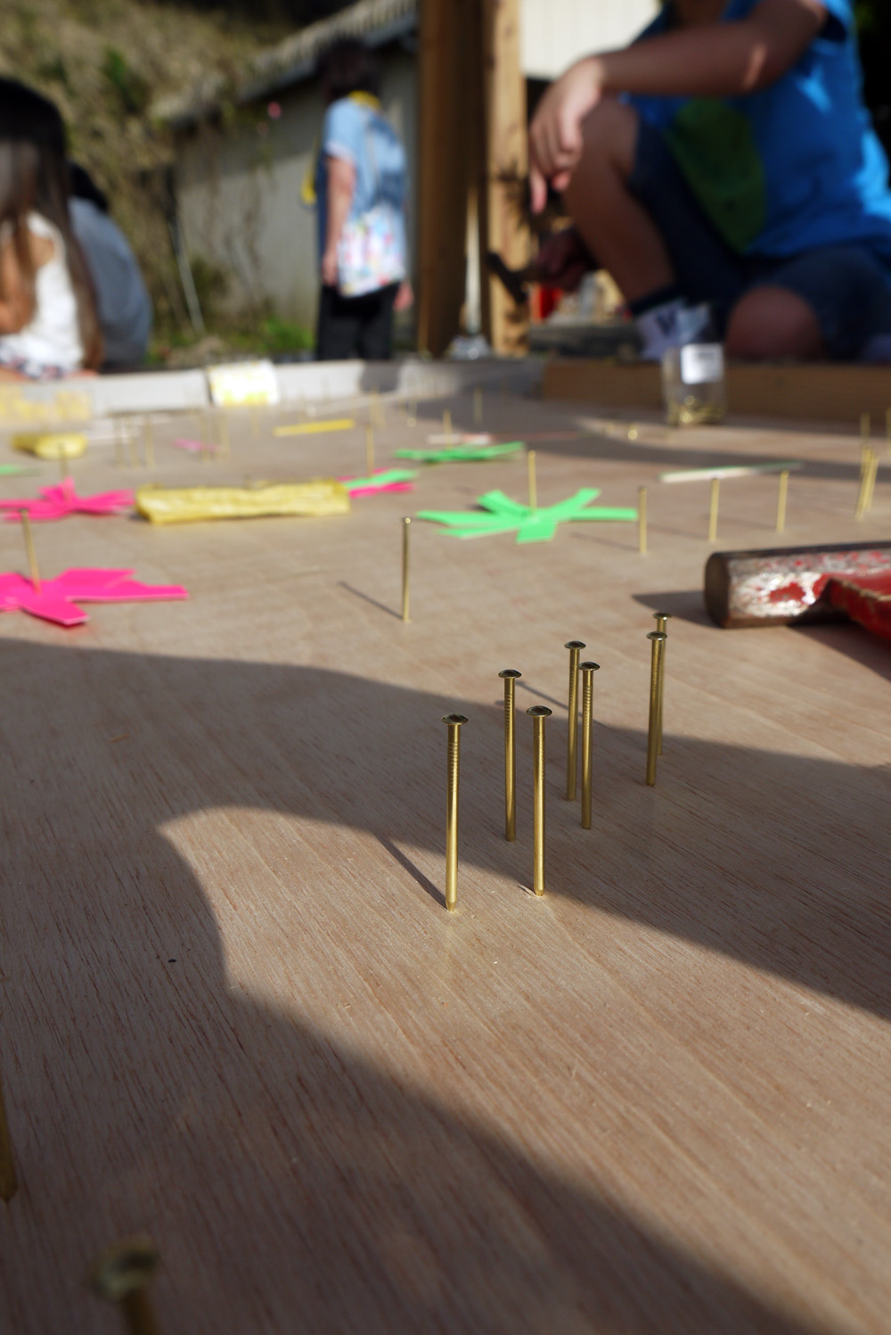 鉛筆で下書きしながら、もしくはフィーリングのままにクギを打ってコースを作って行きます。