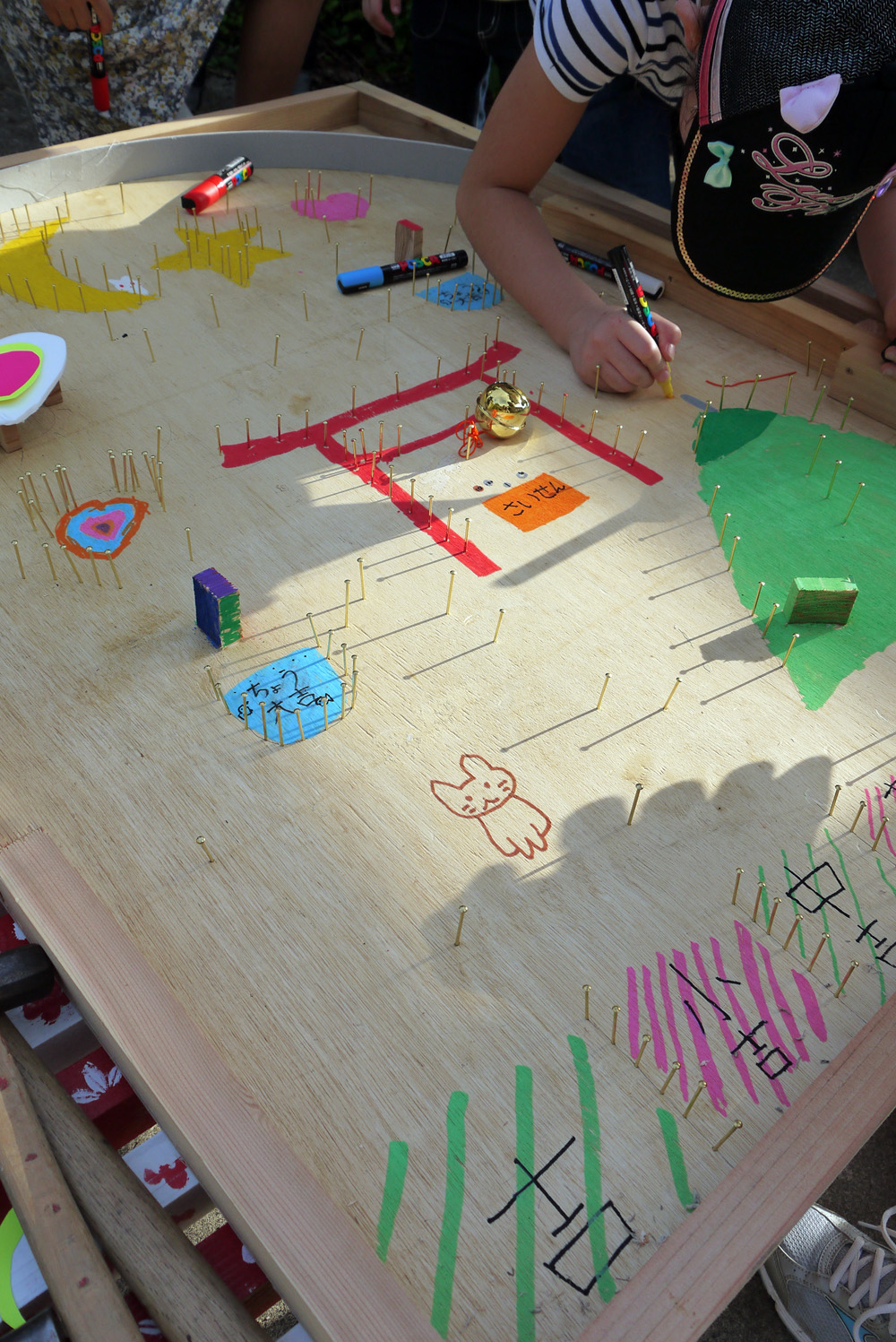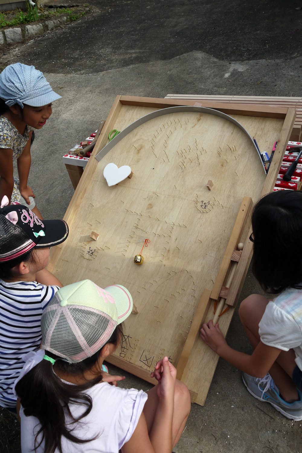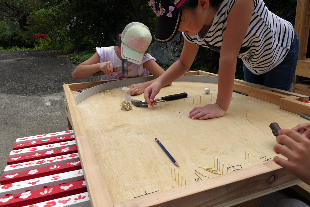 木のボールを使ったのですが、クギに当たる音が意外に綺麗でした。