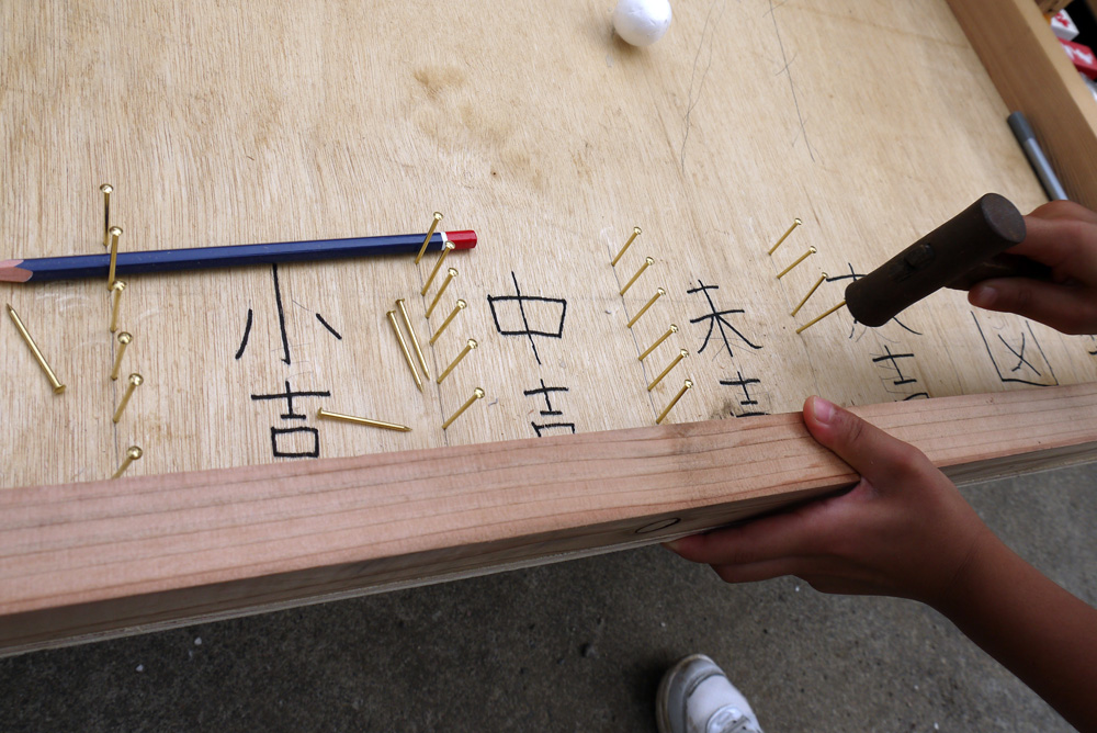 今年は大工仕事を塾でいろいろやってきたので、そのスキルが活かせるように、釘打ちを主な作業に工作ができるコリントゲーム作りをすることにしました。