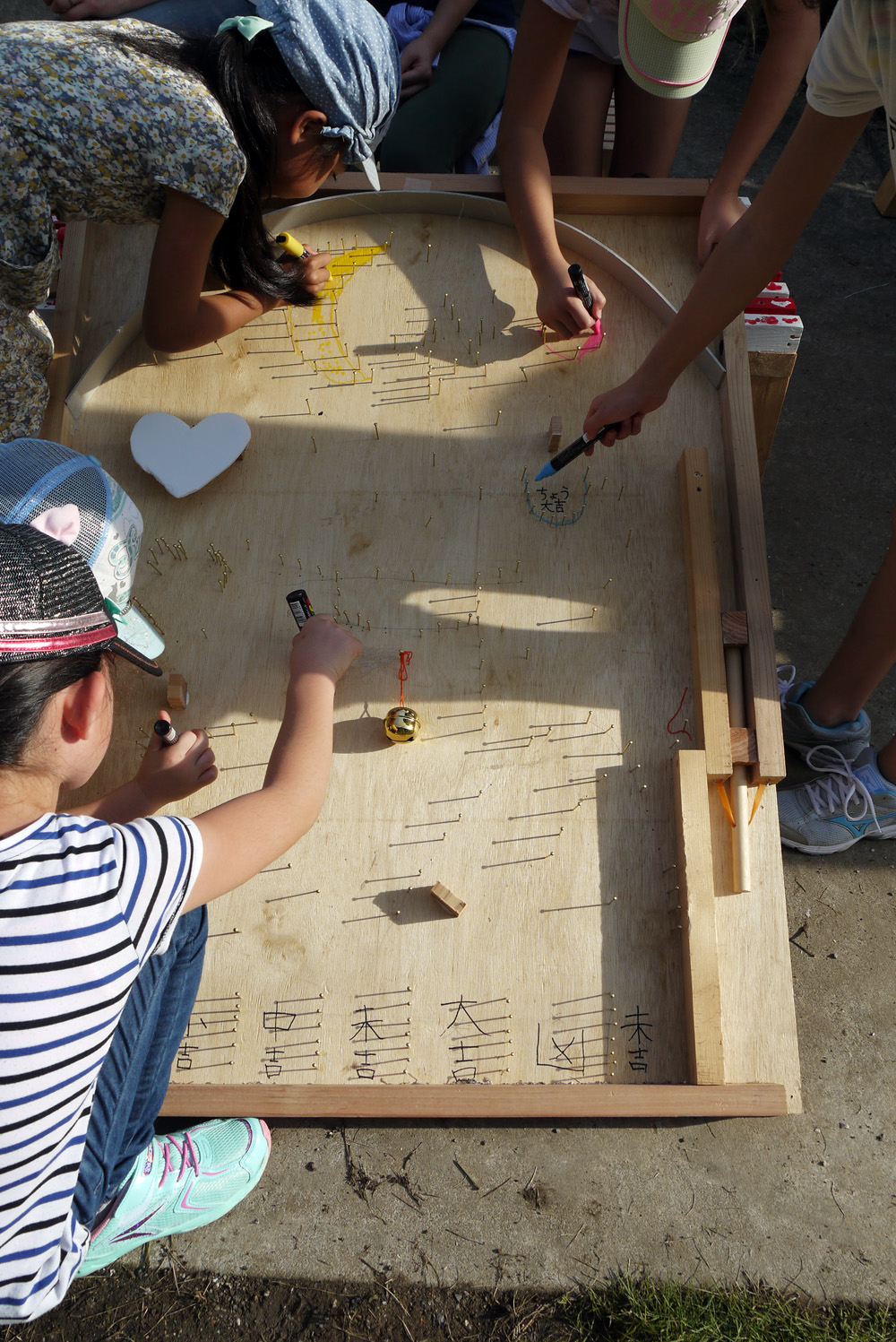 回転する車輪やタコ糸、おやつに食べたアイスの棒までも使って、いろんな仕掛けを作ります。点数もどんどんインフレを起こしていって大当たりは1千万点だったような気が・・・